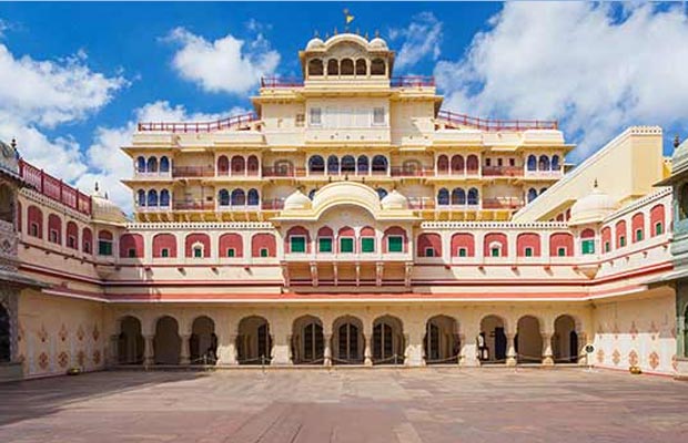 City Palace, (Inside the old city, close to New Gate and Hawa Mahal). An imposing blend of traditional Rajput and Mughal architecture. It is a vast palace complex occupying nearly one-seventh of the Pink City. It was originally built by Maharaja Jai Singh II. The complex is divided into a series of courtyards, sprawling gardens and buildings. It is home to several palatial structures like the Chandra Mahal, (home to present Maharajah of Jaipur), Mubarak Mahal (housing a textile museum), Diwan-e-Khas (or Hall of Private audience housing the two largest silver vessels in the world, which are duly mentioned in the Guinness book), the Diwan-e-Aam ( or Hall of Public Audience) and the gateway Ridhi Sidhi Pol (with four small doorways decorated with motifs depicting the four seasons).