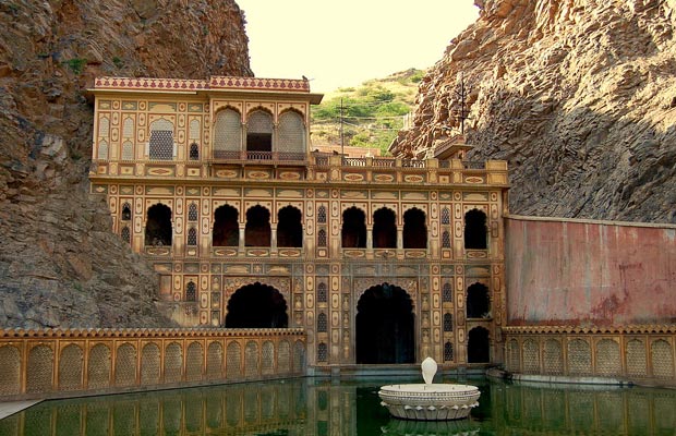 Galtaji is an ancient Hindu pilgrimage site situated 10 km from Jaipur on Jaipur-Agra highway near Sisodia Rani Garden. The main temple here is temple of Galtaji in constructed in pink stone. The temple has a number of pavilions with rounded roofs, exquisitely carved pillars and painted walls. The temple is surrounded by natural springs and reservoirs that are considered holy. There are also seven tanks or kunds here.