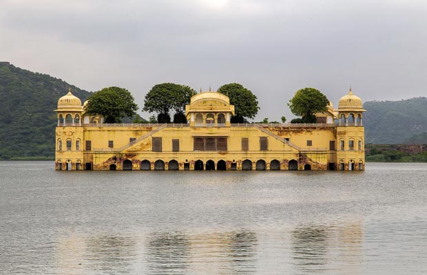 Jal Mahal (Water Palace), (On the way to Sisodia Rani Garden). A Rajput style architectured palace sits in the center of the Maan-sarovar lake. The lake is often dry in the winter, but summer monsoons frequently turn it into a beautiful lake filled with water hyacinths.